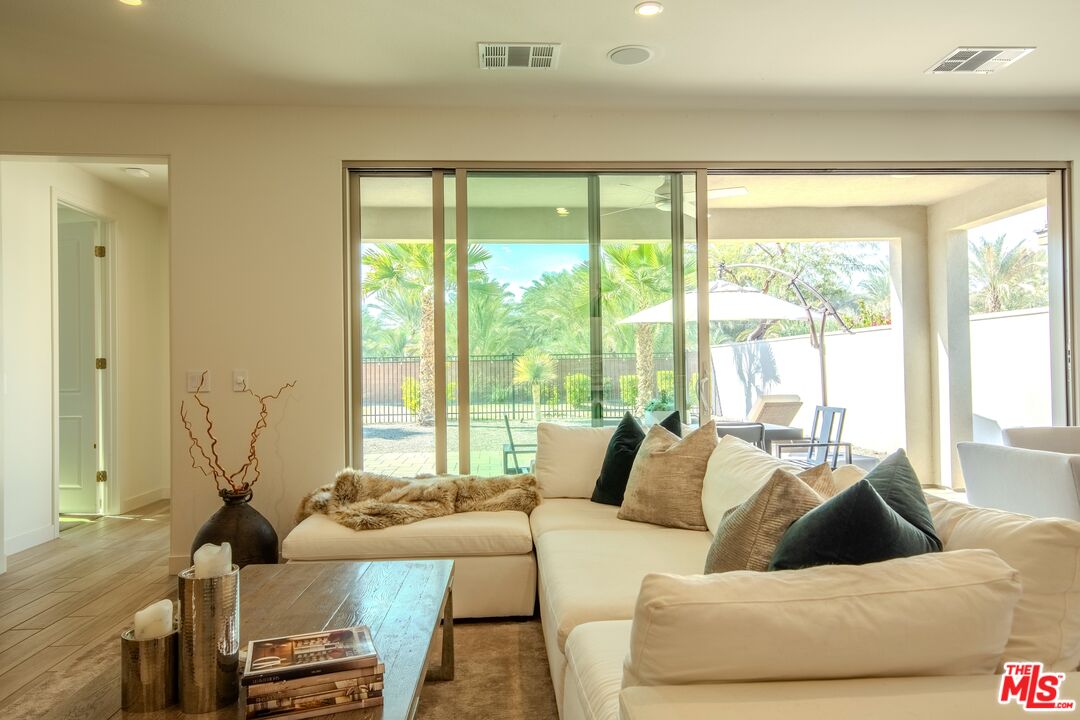 Welcome To Trilogy At The Polo Club! The Highly Desirable Community Is Where Resort-Style Living Meets Everyday Best Life. This Beautifully Upgraded Single-Story Affirm Model Residence On A Premium Lot Offers 1,622 Square Feet Of Well Crafted Designed Living Space With Two Bedrooms, Two Bathrooms, and A Versatile Den Space-Perfect For Your Home Office, Media Room, Creative Studio, Or Perhaps A 3rd Bedroom. Inside You Will Discover A Bright And Open Floor Plan, Highlighted By High Ceilings, Tile Floors Throughout The Main Living Areas. Seller Has Upgraded All The Details From Baseboards To Door Handles , Even all The Outlets And Switches. With A The Rolling Glass Wall That Blends Indoor And Outdoor Living Which Presents You To The Wonderful and Eye Opening Views. Gorgeous Mountains And Palm Trees! Now That's California Living. The Gourmet Kitchen To Handle Your Quaint Dinners To All Your Closest And Large Friends And Family Gatherings, Featuring Upgraded Cabinetry, Stainless Steel Appliances, Dramatic Countertops, And A Spacious Island. The Primary Suite Is A Very Relaxing Retreat With Dual Vanities & A Generous Walk-In Closet. A Second Bedroom And Full Bath Provide Comfort For Guests Or Loved Ones. Outside, A Landscaped, Low-Maintenance Backyard Offers A Peaceful Oasis Framed By A Paver Patio With South Western Sky Views. Enjoy Your Morning Coffee Or Evening Libation On The Outdoor Space That Invites Serenity And Connection With Nature. If You Decide To Join The Club, A 25,000 Sq Ft Clubhouse With A Fitness Center, Resort And Lap Pools, Tennis, Pickleball, And Indoor Golf Simulator Will Be Waiting For You. Also Open To All Is The Award-Winning June Hill's Table Restaurant. This Home Is A Rare Opportunity To Enjoy A Quality, Active Lifestyle With New and Old Friends In One Of The Desert's Most Desirable Communities. Welcome To Trilogy At The Polo Club